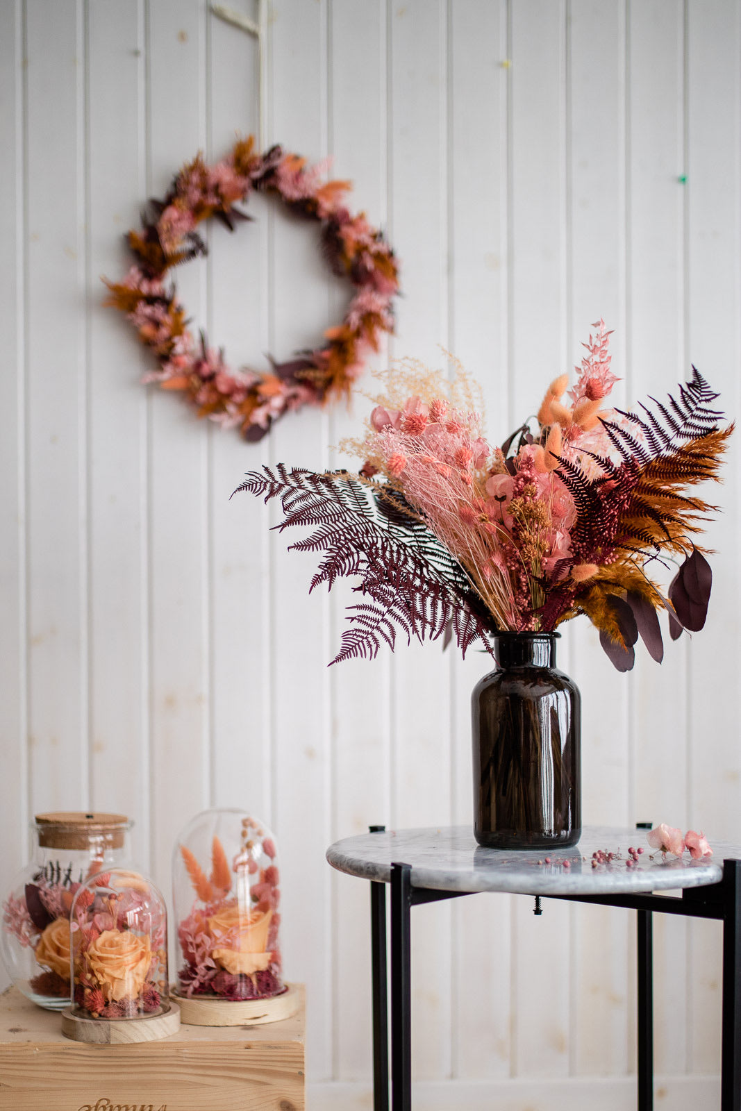 Bellissime composizioni con fiori secchi e stabilizzati. Spedizioni in tutta Italia
