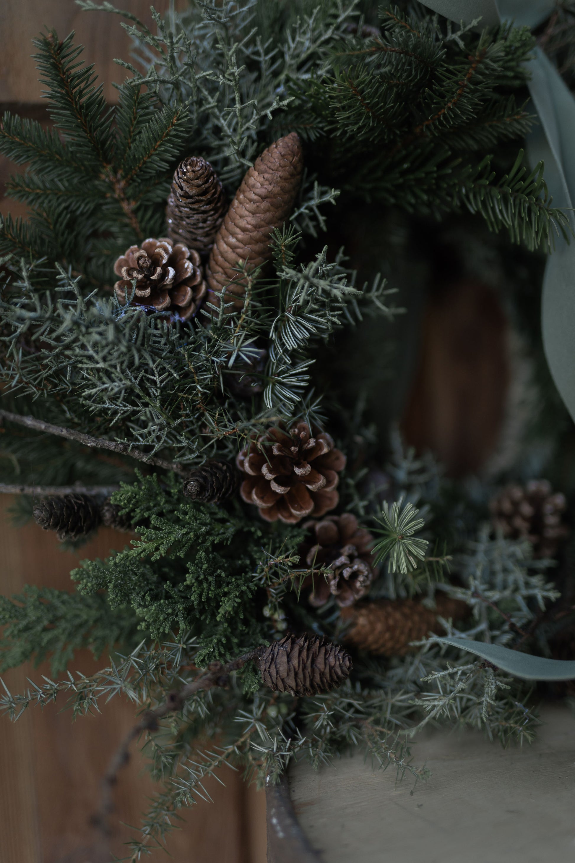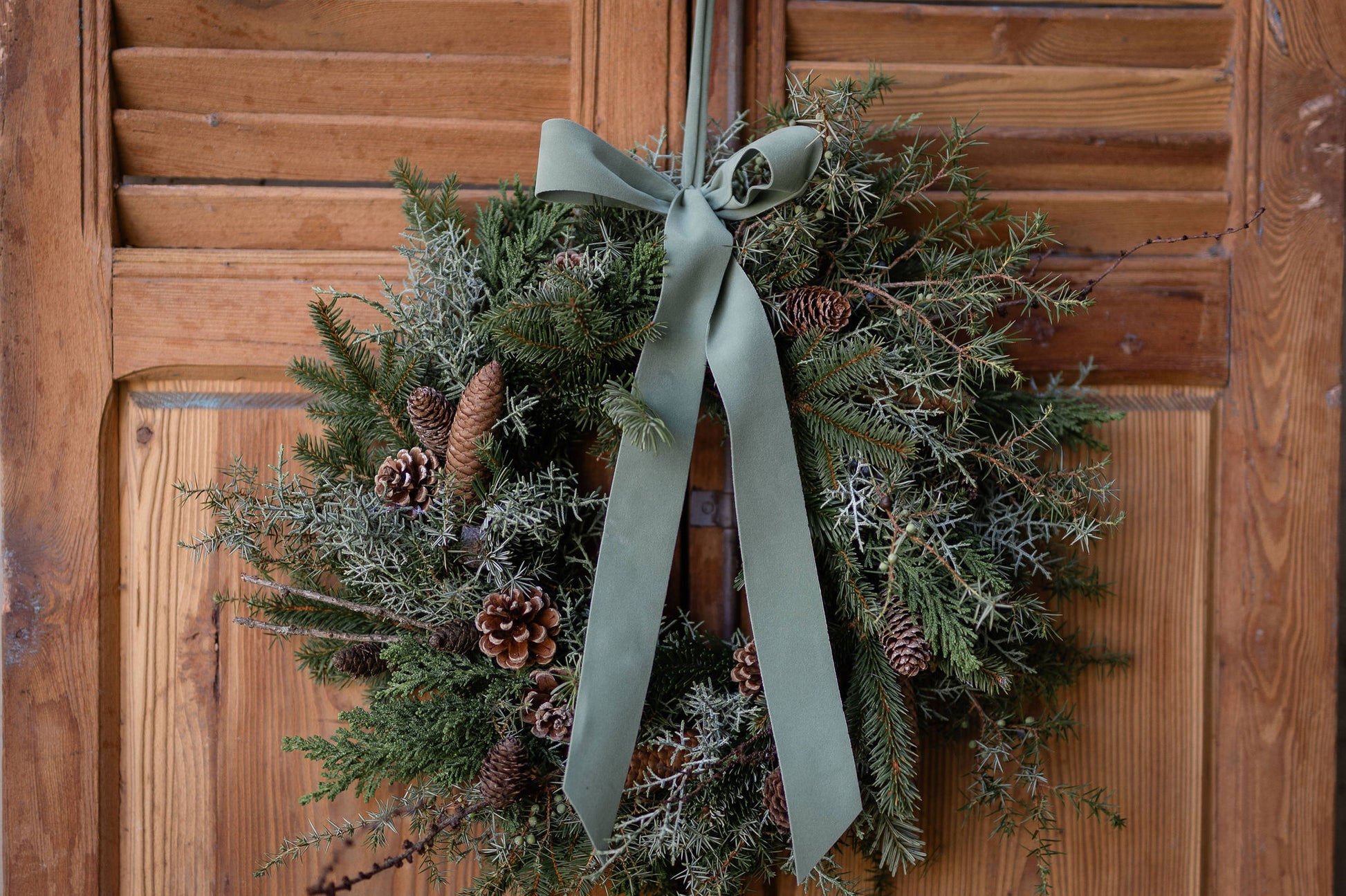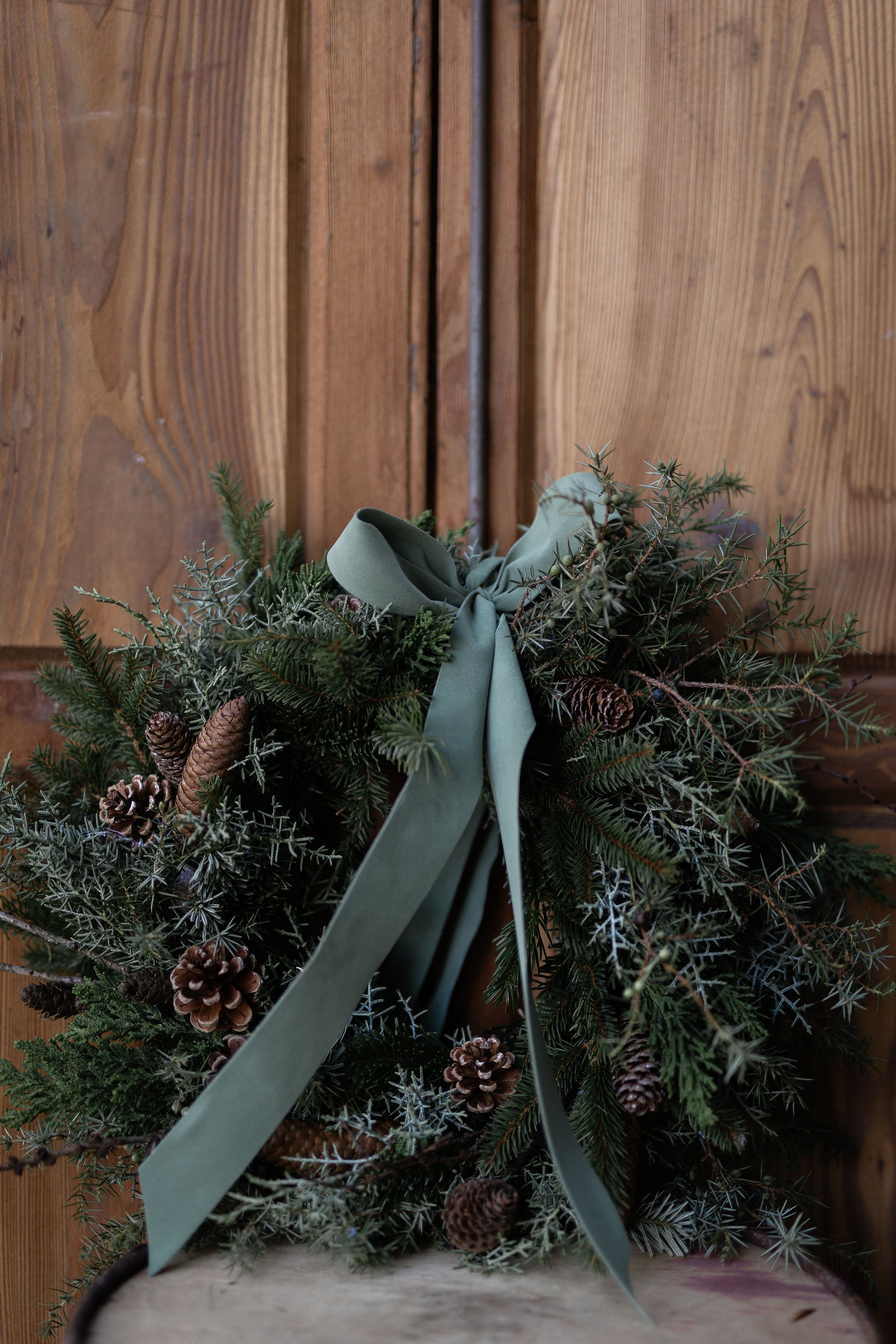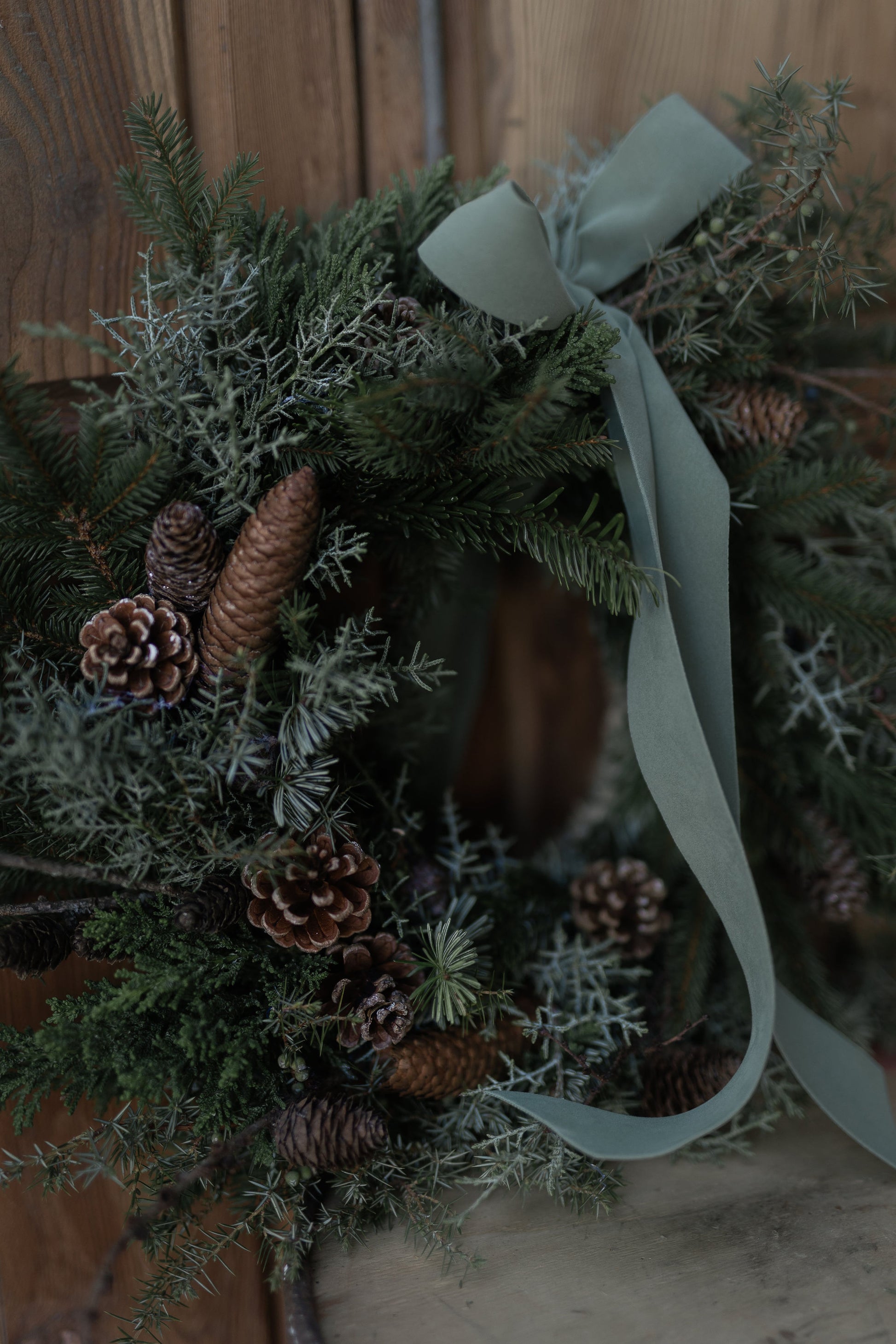 Una ghirlanda interamente intrecciata a mano utilizzano almeno quattro tipologie diverse di verde invernale. .Completeranno la ghirlanda delle pigne ed un nastro in velluto verde per renderla ancora più naturale ed elegante